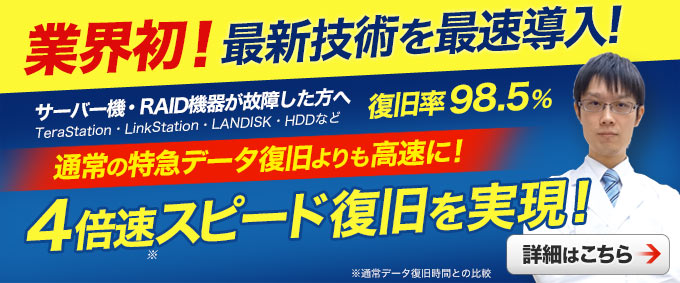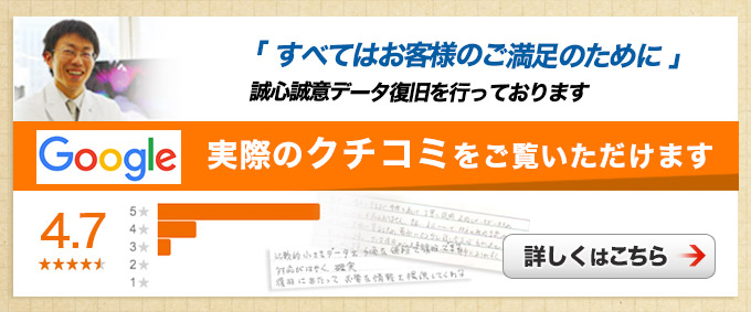 | お客様の声 | 自分たちだけではなく、お客様も使用されるデータが入っていたので、復旧できて非常に助かりました。 | ||