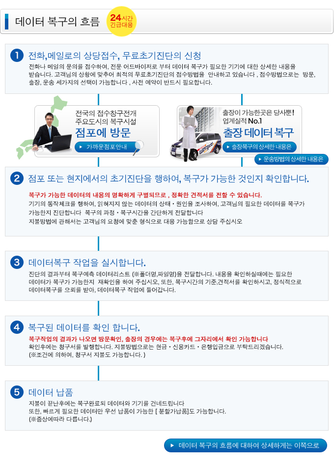 出張データ復旧サービス|お急ぎの方へ|データ復旧がはじめての方へ|データ復旧の流れ