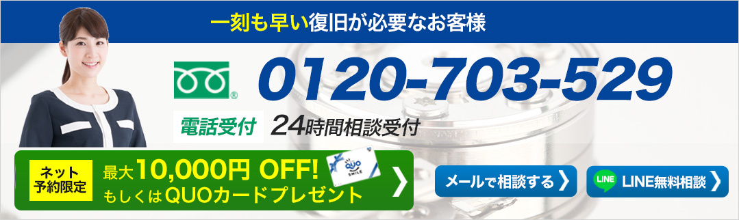 お電話でご予約後、その場で無料診断。症状の分析と復旧が可能な状態か、御見積もりが可能です。
