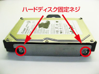 ハードディスクを固定しているネジを取り外して、台座から外します。 |