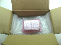 輸送中の衝撃から守るため、紙袋に入れたハードディスクをプチプチでくるみます。 |
