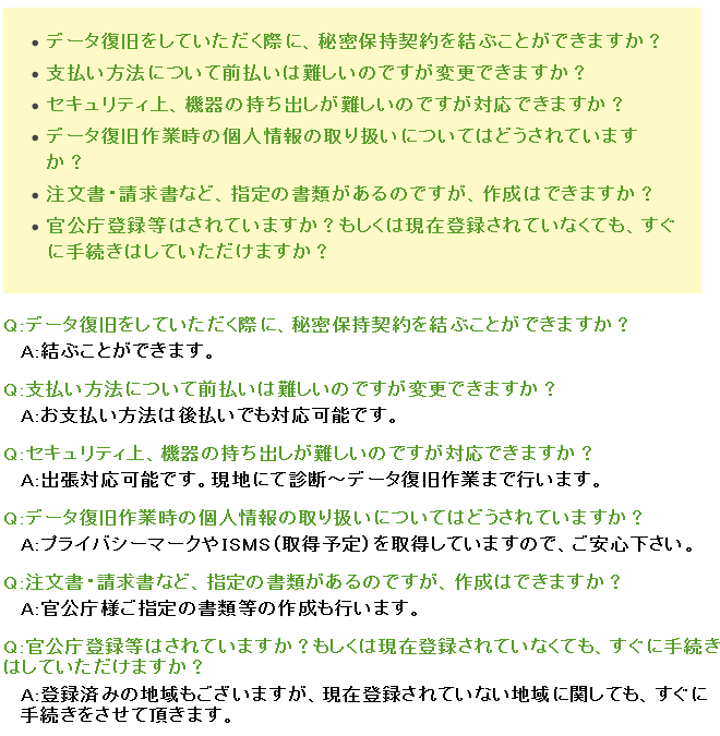 | データ復旧の 作業内容 |
